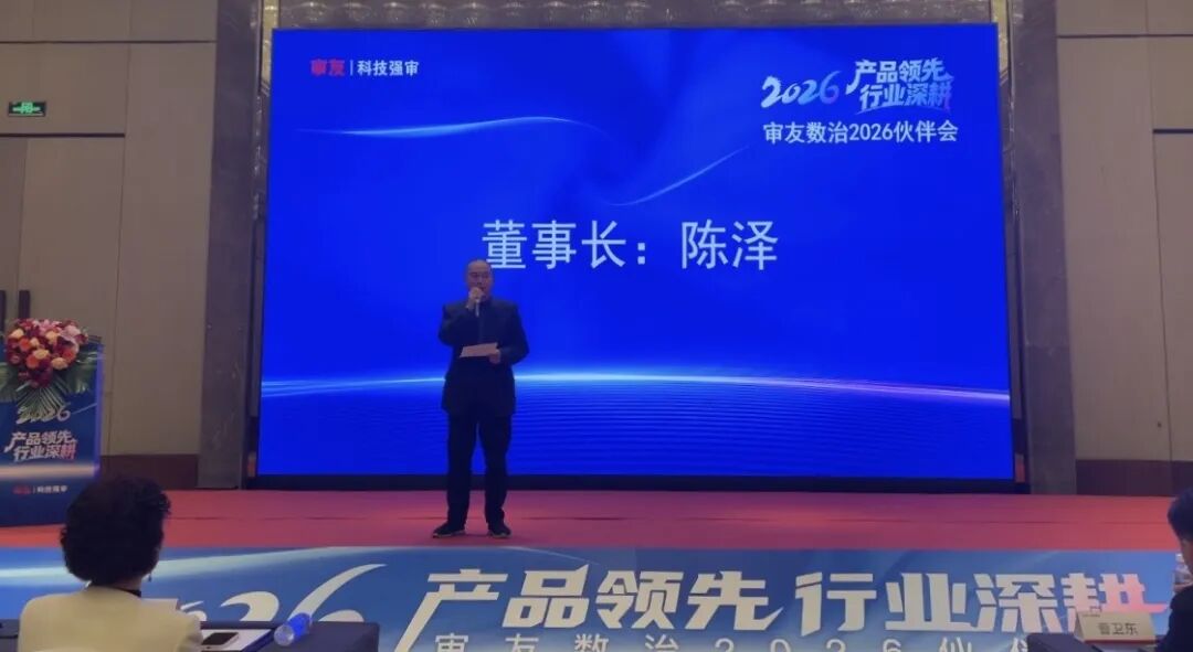 大会伊始,审友数治董事长陈泽登台致辞,回顾2025年产品创新与行业深耕成果,解读国家审计数字化、智能化政策红利,擘画2026年AI赋能、行业深耕、生态共赢的发展蓝图,传递与伙伴同心聚力、资源共享、共拓市场的坚定信心,全场伙伴倍感振奋、共识凝聚。